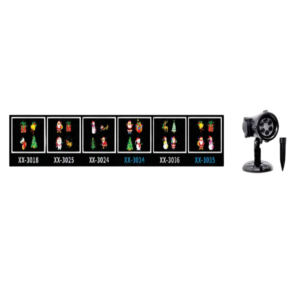 O Projetor de Led com luz RGB projeta desenhos natalinos que giram pelo ar. Tem ótima resistência, totalmente prova d’água. Modelo muito utilizado em jardins, pois acompanha um espeto para poder fixar no chão com mais facilidade. Ele projeta 4 figuras de Natal por cartão, acompanha 4 cartões. É conectado pela fonte IP20, uma fonte resistente e muito durável.