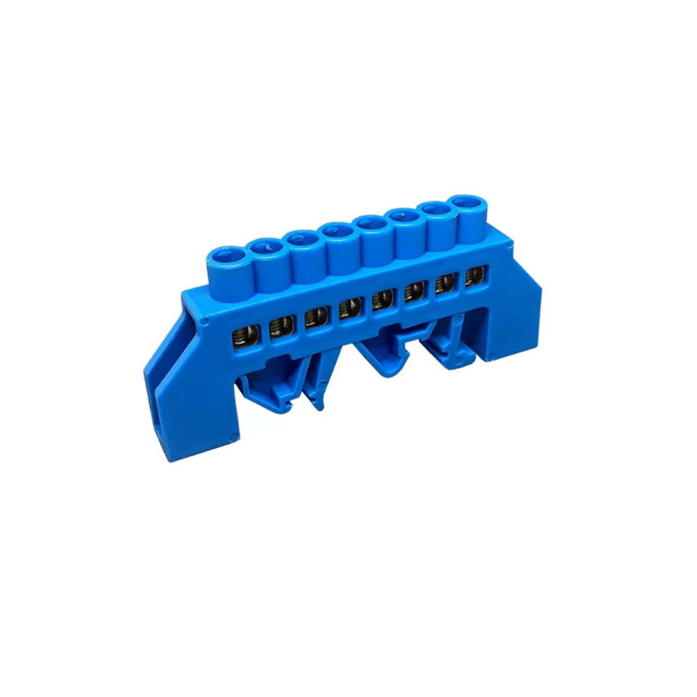 Barra de neutro 08 ligações 80a para trilho com suporte com proteção azul fixação trilho din e parafuso (7881263) (Rohdina)