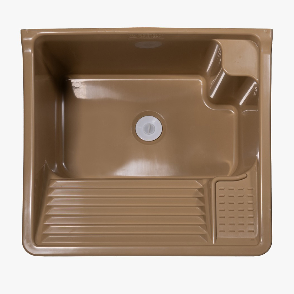 Tanque compacto, mas completo! Nossa Cuba em Plástico oferece praticidade com capacidade de 26 litros, esfregador frontal, suporte para sabão e base para torneira de bancada ou parede. Adapte-o ao seu espaço, fixando-o na parede. Prático e funcional!