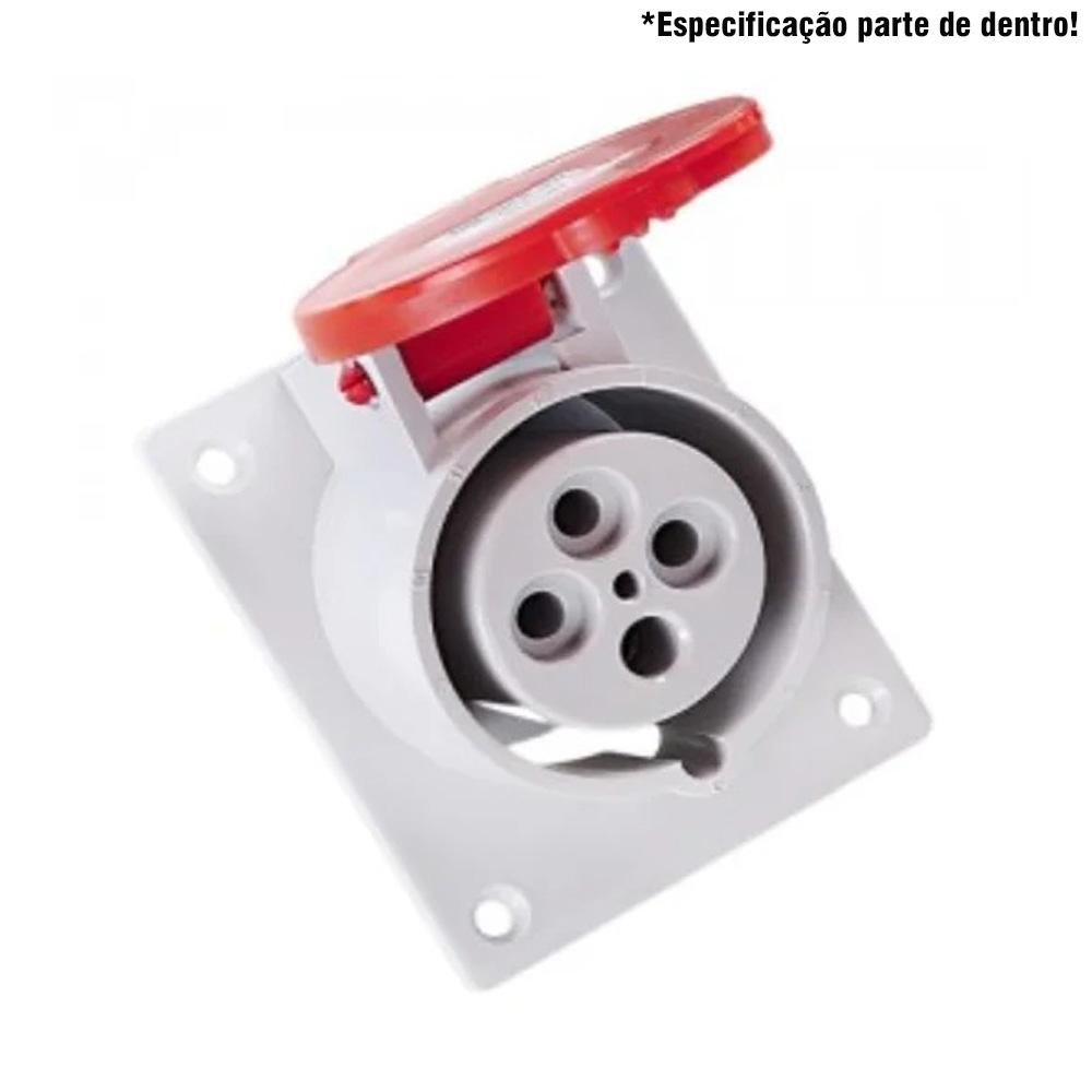 Tomada sobrepor vermelha 3 pinos + terra 16a 380/440v 6h ip44 (TMS3416) (HJ)