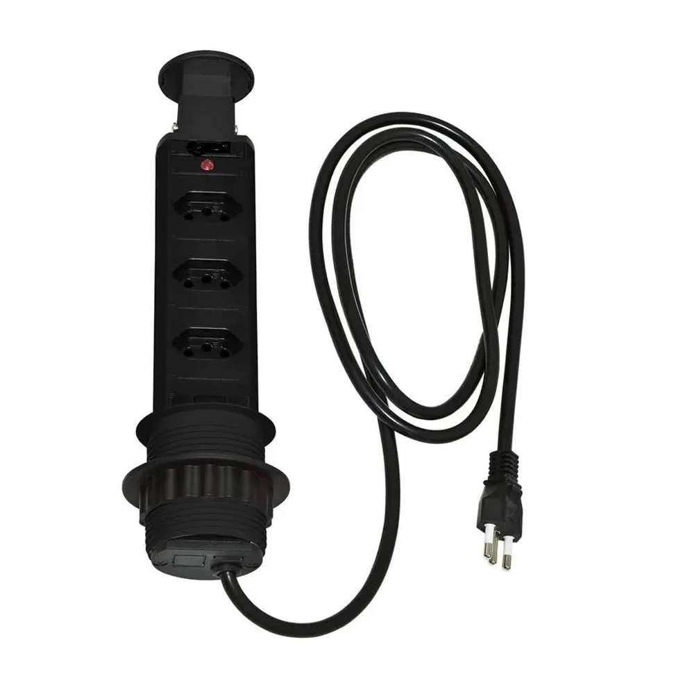 Torre de tomada para bancada com 3 tomadas 2 pinos + terra embutir preta (3.650.7297) (Pix)